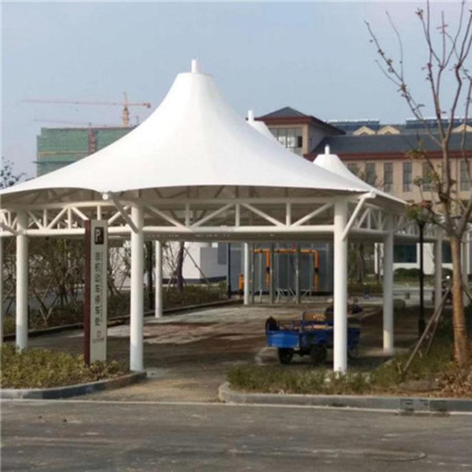 车棚随着都市现代步伐的加快,汽车成为任何一个都市不可缺少的交通工具。我国由于汽车工业高速发展,城市的汽车拥有量成倍上升,但城市建设规划没能尽快适应这一发展要求,常常是车无停放之地。所以在建设群规划时就应充分考虑停车场的问题,吧停车场的建设和规划当成现代城市建设规划的重要组成部分,变得越来越重要。鉴于此,膜结构造型的停车棚在停车场建设中也以其优美的造型和实在的功能担当重要角色。