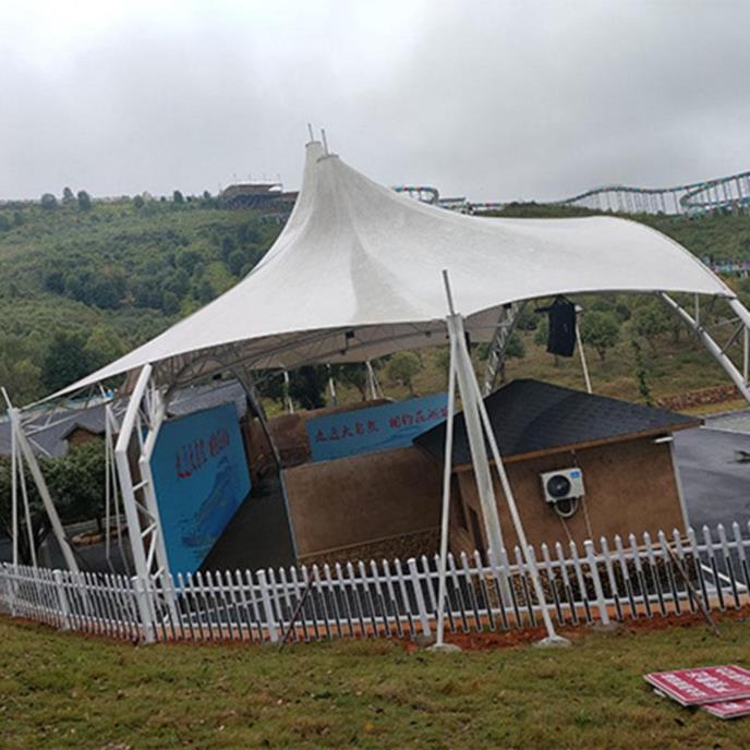 公司开发的膜结构建筑风格特别,艺术性强,具有浓厚的现代气息,广泛应用于景观膜体育场馆、高速公路收费站、公园小区、大型停车场、博览会展厅、公共场所、休闲场所、景区装饰等。